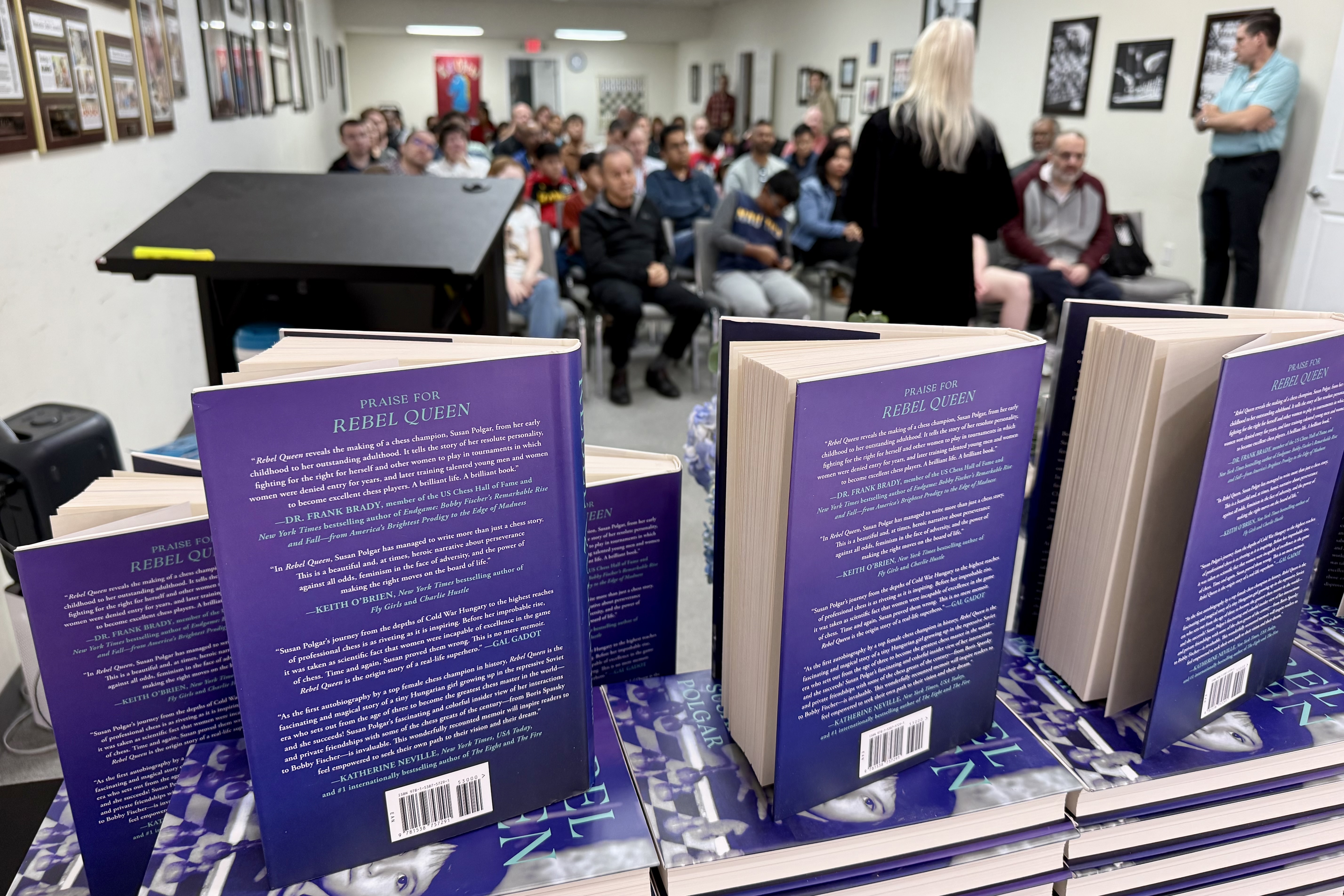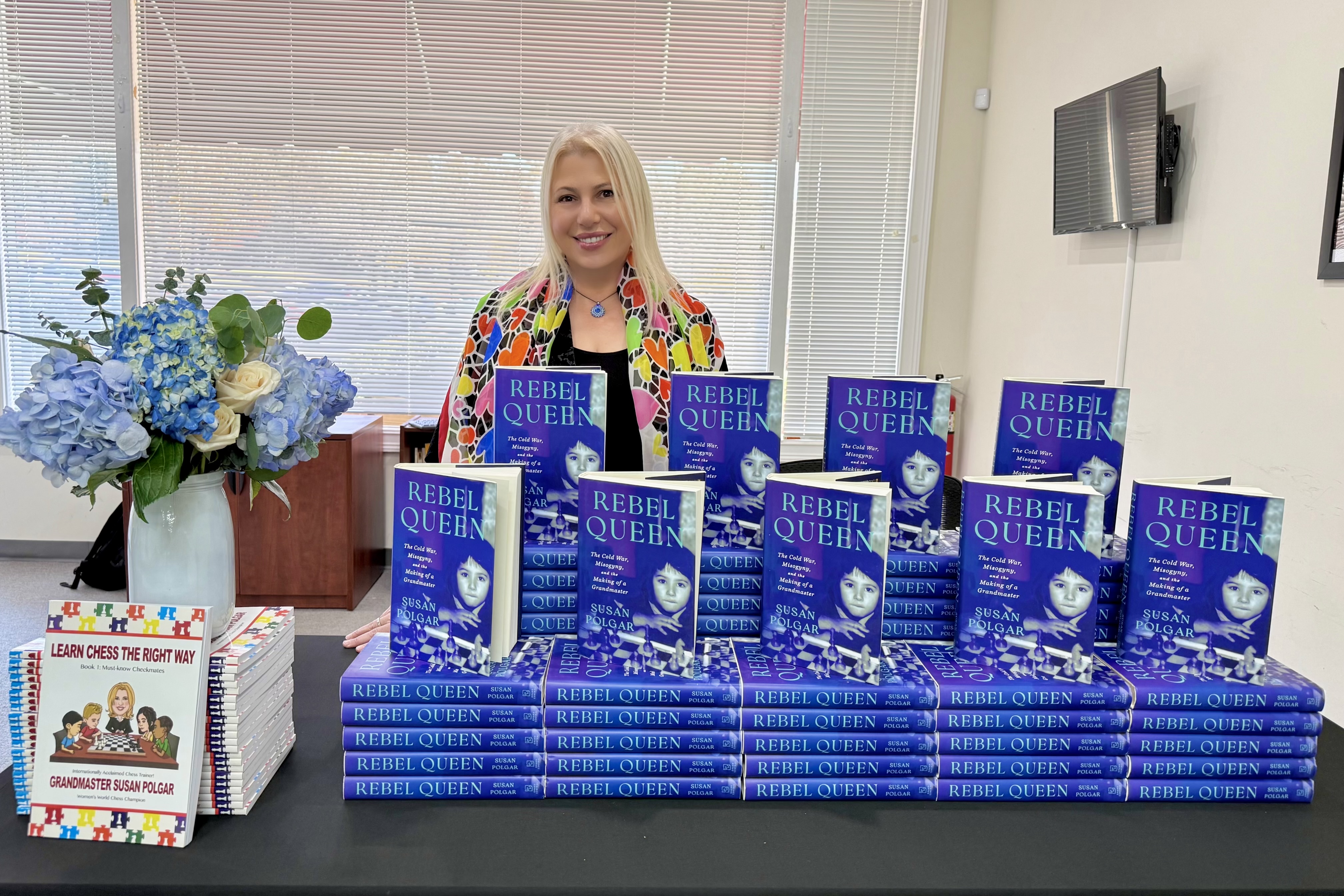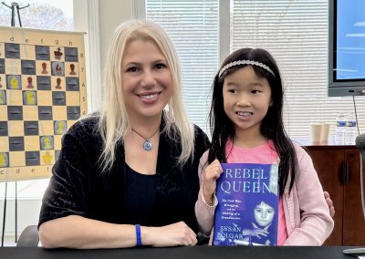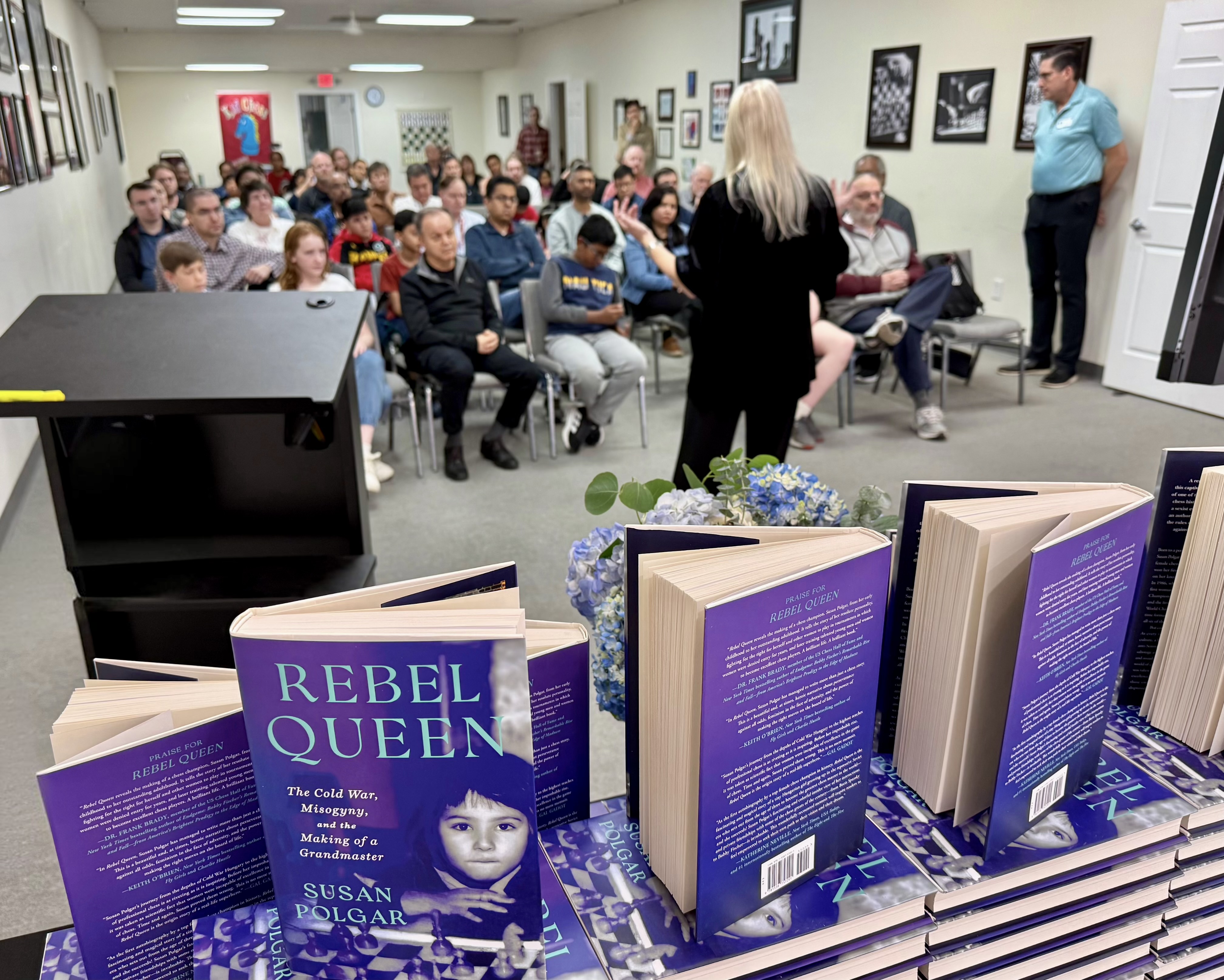 Chess Zone was thrilled to host the legendary Susan Polgar on Saturday, November 15 for a special members-only event at Chess Zone. We had a full house of close to 60 attendees. Her powerful and inspiring message during a lecture featuring game analysis and a rousing Q&A session left both our young and adult players motivated and full of passion for the game. She signed copies of her book Rebel Queen: The Cold War, Misogyny, and the Making of a Grandmaster, addressed personally to attendees. There are additional signed copies available at Chess Zone for $20–make sure to pick up a copy on your next visit. (They also make great holiday gifts!)